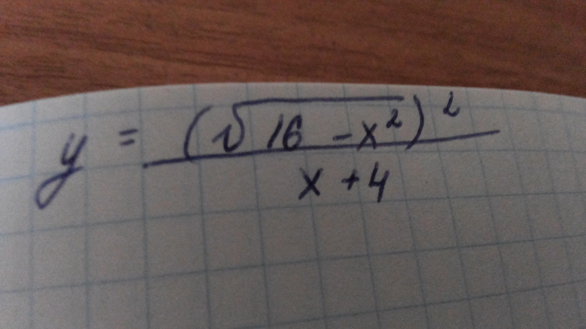 y = (√(16 - x^2))^2 / (x+4) = (x - 4)(x+4) / (x+4) = x - 4