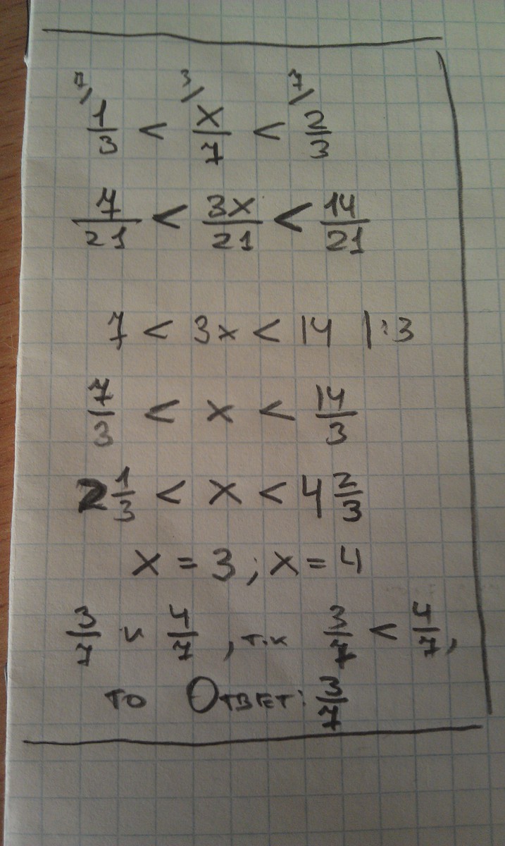 приведём дроби 13 и 23 к знаменателю 21, для этого домножим их на 7