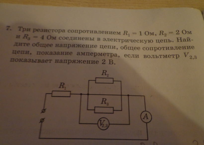 Rобщ=R1+R2.3=1+1.333=2.333 Ом