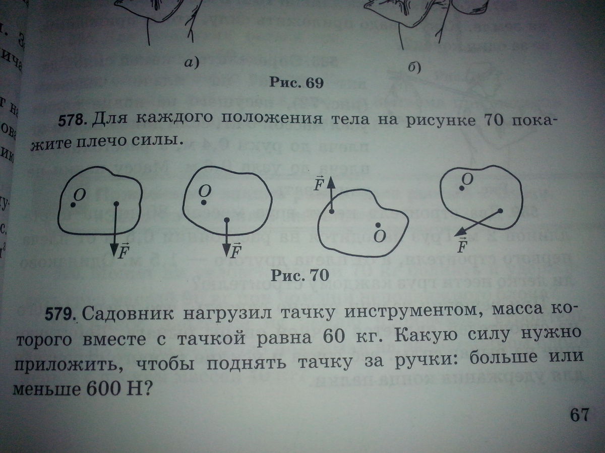 578. Для каждого положения тела на рисунке 70 покажите плечо силы. помогите! очень нужно
