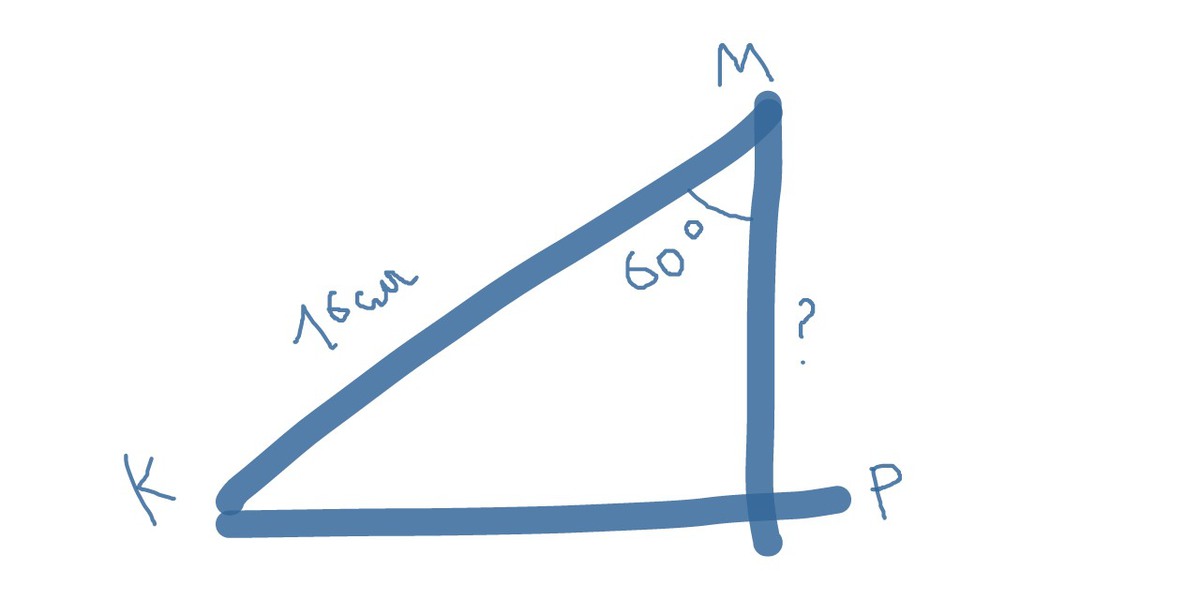 Короче тема такая. В прямоугольном треугольнике против угла 30 градусов лежит катет равный половине гипотенузы. 180-90-60= 30. Угол K = 30 Значит PM = 8