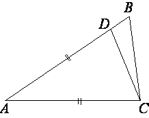 Точка D на стороне AB треугольника ABC выбрана так, что AD=AC. Известно, что ∠CAB=122∘ и ∠ACB=47∘. Найдите угол DCB. Ответ дайте в градусах.