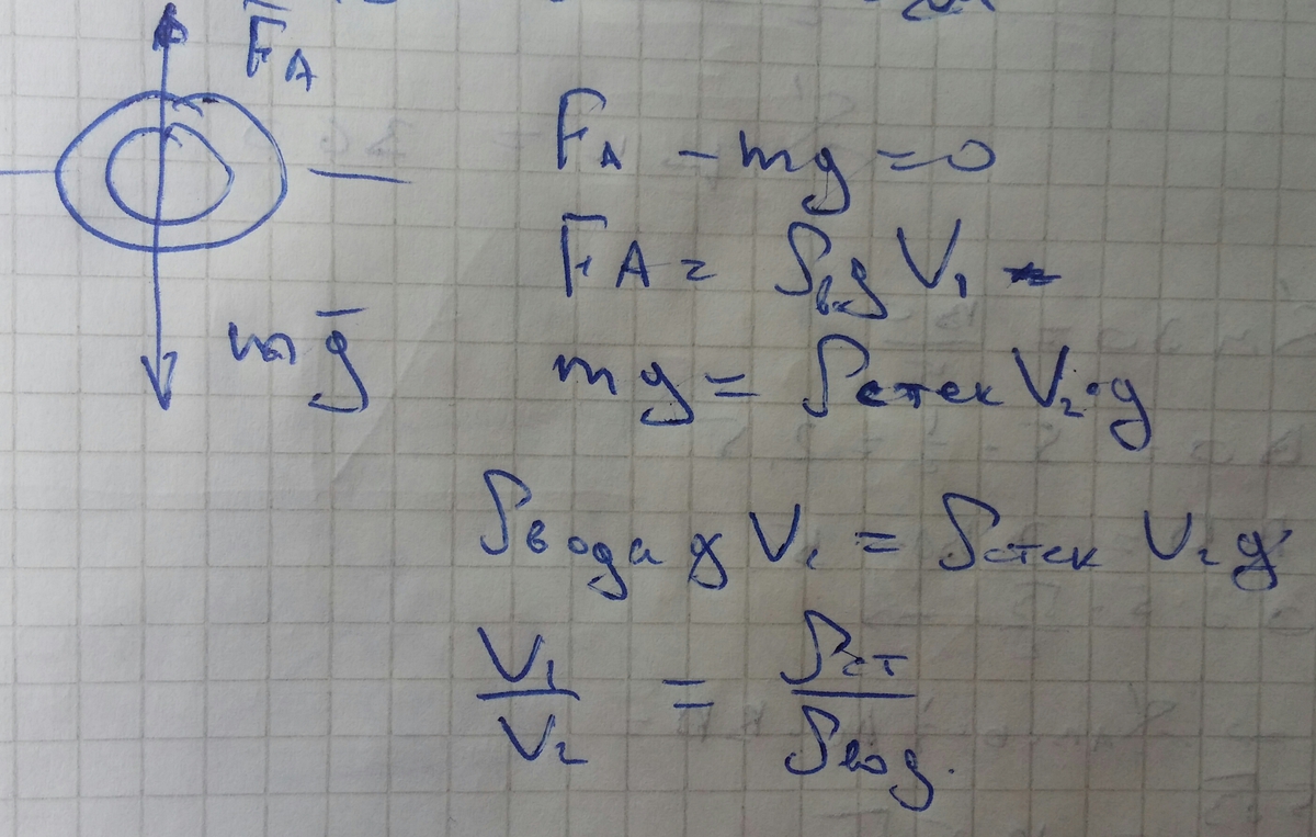 какую долю объема стеклянного шарика должна занимать внутренняя полость , что бы шарик плавал в воде?Пожалуйста помогите решить как можно быстрее