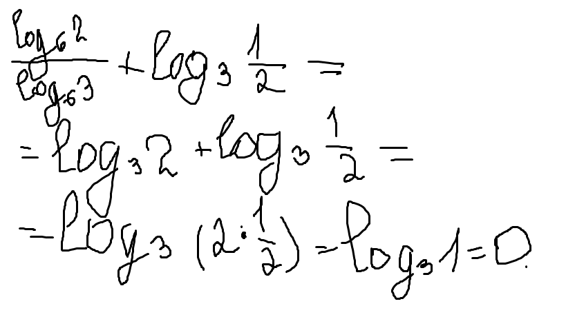 Найти значение выражения: логарифм по основанию 6 двух разделить на логарифм по основанию 6 трех +логарифм по основанию трех 0,5