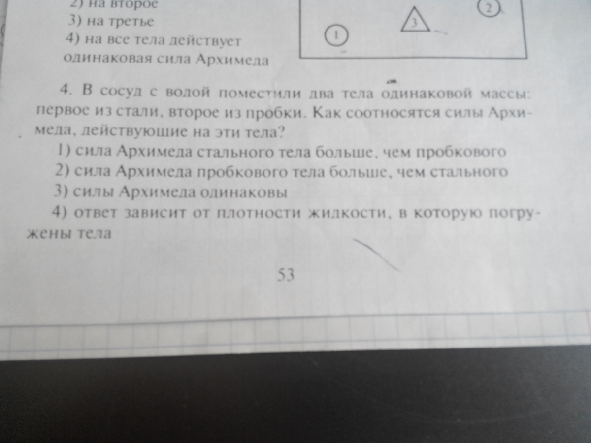 Да, у пробкавой плотность меньше, значит если пробковое тело весит килограмм и стальное тоже, то объёмы будут разные, а чем больше объём, тем больше сила Архимеда!