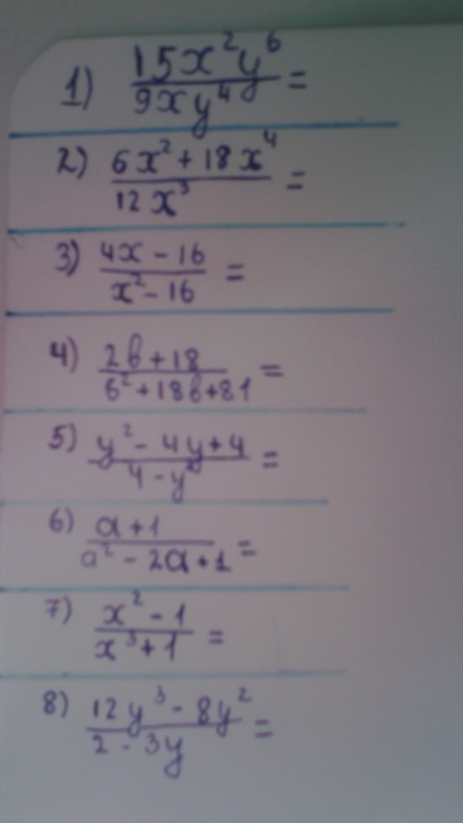 1) 15x^2y^6/9xy^4=5xy^2/3
