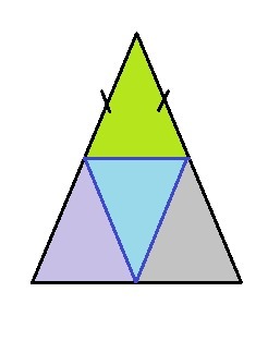 Если разделить треугольник тремя средними линиями, то получится 4 равных равнобедренных треугольника.