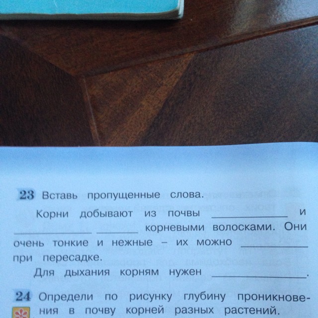 1)корни добывают из почвы воду и питательные вещества корневыми волосками.2)они очень тонкие и нежные -их можно сломать при пересадке 3)для дыхания корням нужен воздух или угли кислый газ. :)