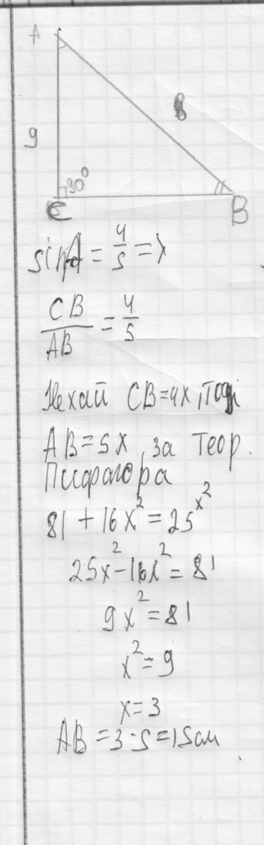 AC/AB = cos A, AB = AC/cos A = 15