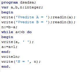 порядке возрастания все целые числа, расположенные между A и B(в том числе A и B),