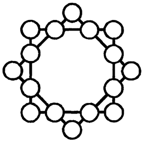7. Расставь числа от 1 до 16 включительно в кружки фигуры так, чтобы сумма чисел по каждой стороне каждого квадрата была одинаковой и равнялась 34.