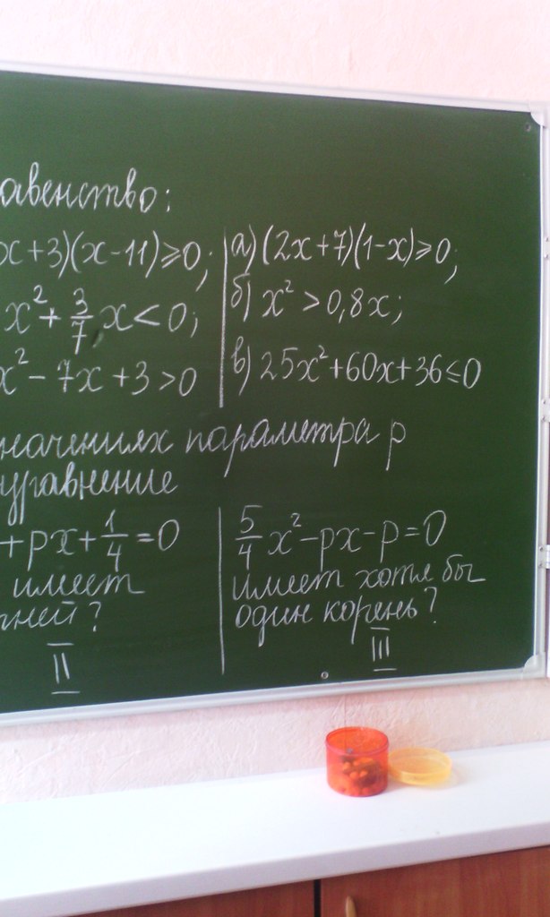 Второе: при каких значениях параметра p квадратное уравнение имеет хотя бы один корень.