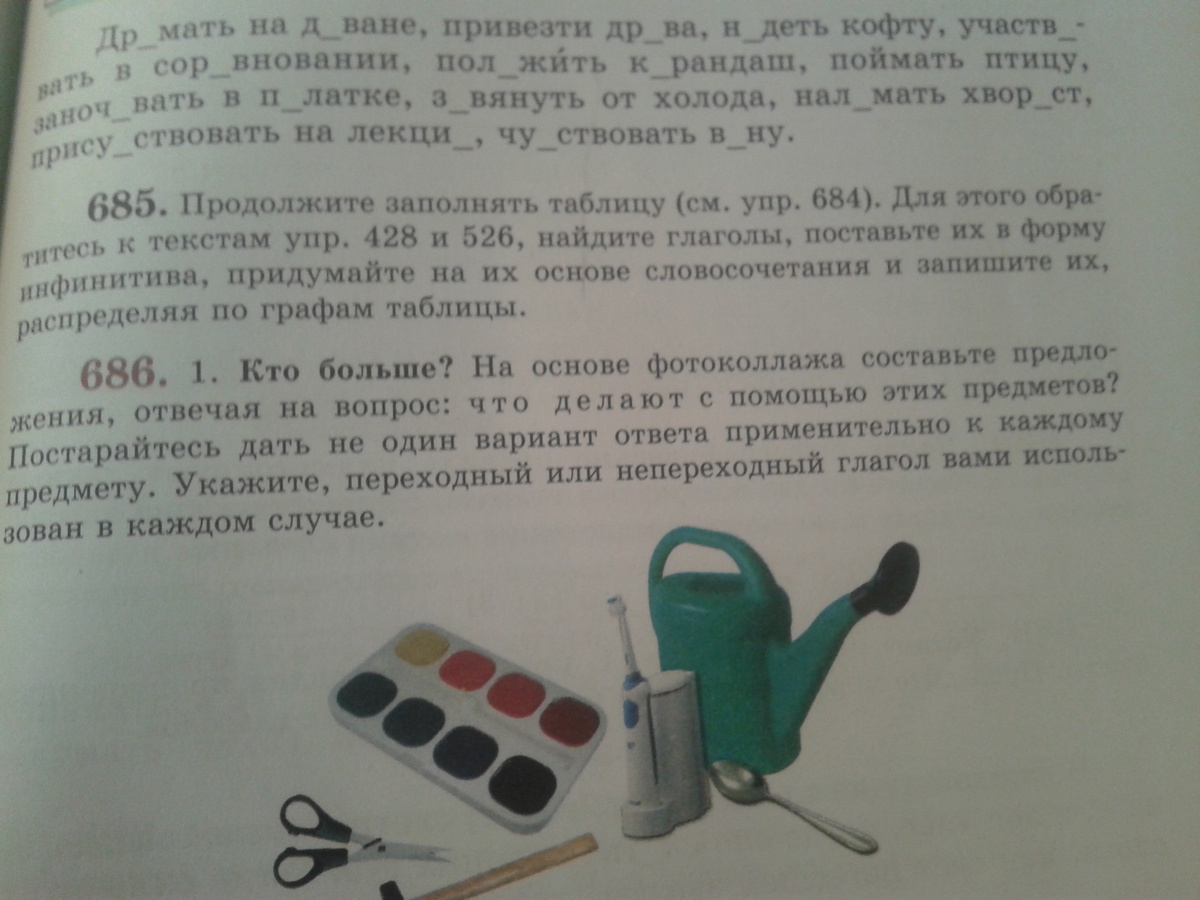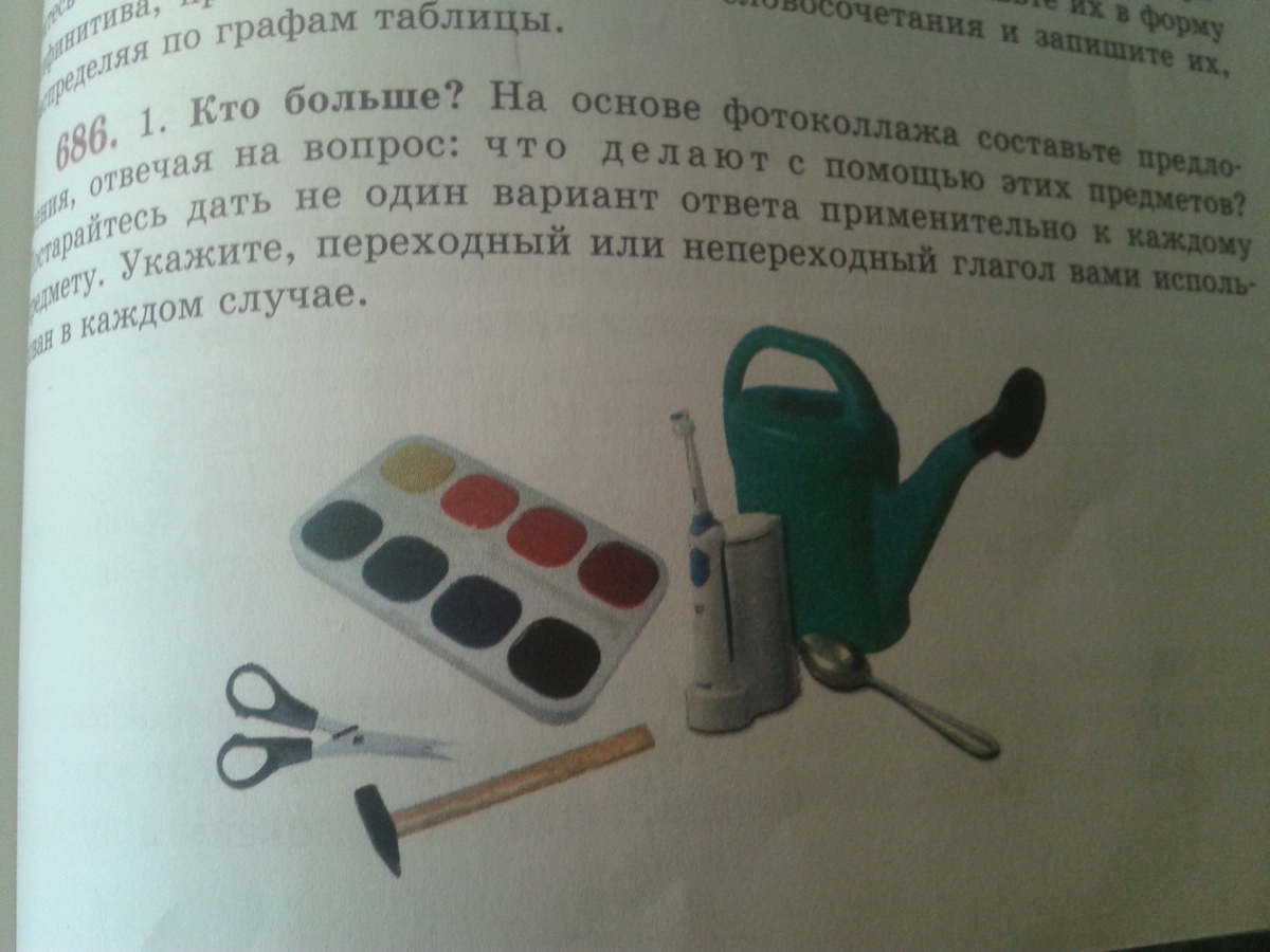 1)Я люблю рисовать акварелью . Жаль , что акварель не подходит для подделок из дерева.Моя бабушка поливает лейкой цветы . Даша , передай мне ножницы , пожалуйста! Мне нужно отрезать ненужную ткань . : сказала Катя .Незаменимый инструмент - молоток , он всегда пригодится!
