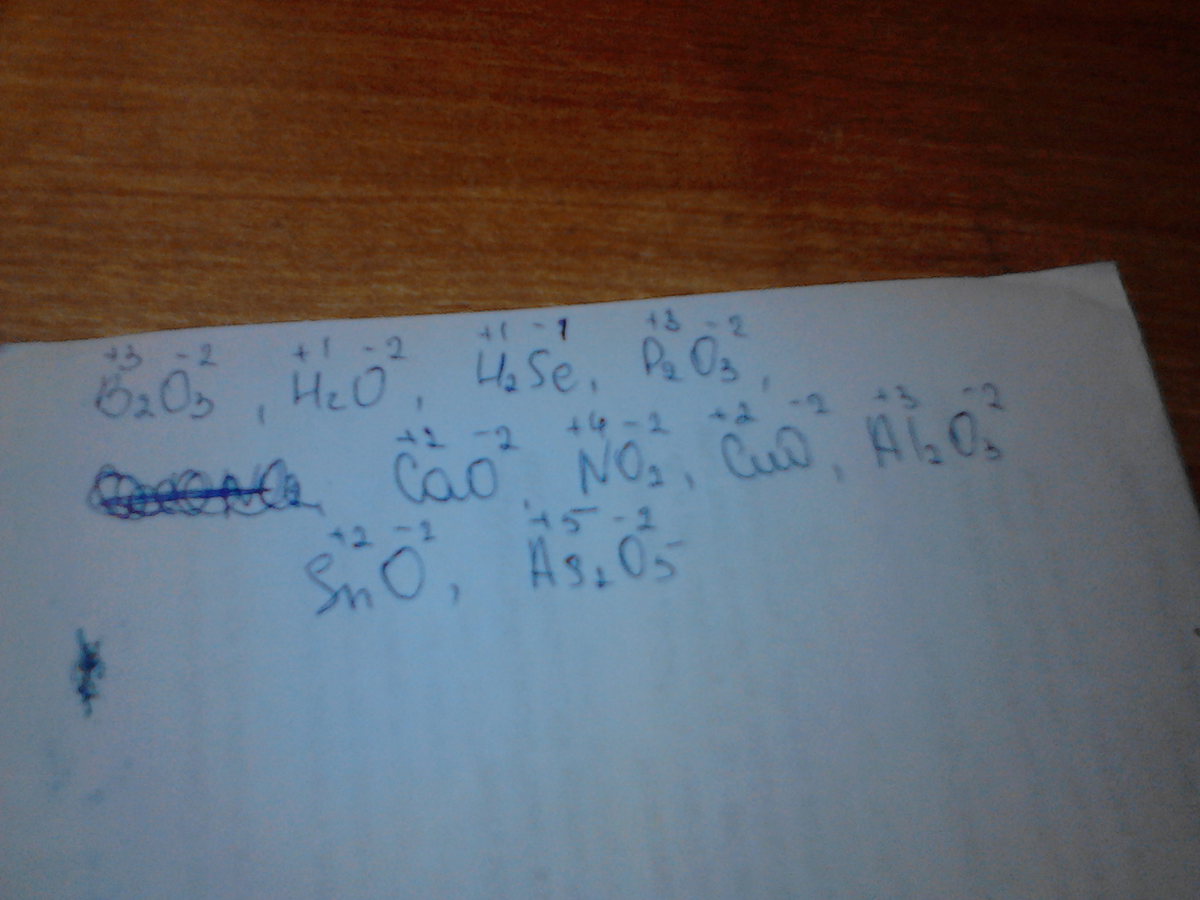 Расставьте степени окисления элементов в соединениях: B2O3, H2O, H2Se, P2O3, CaONO2, CuO, Al2O3, SnO, As2O5. Назовите вещества