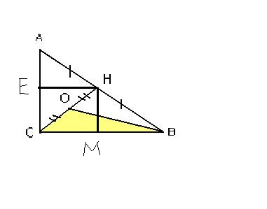 =>Высоты треугольников СВН и САН равны (НЕ=НМ), а основания равны (АС=СВ)
