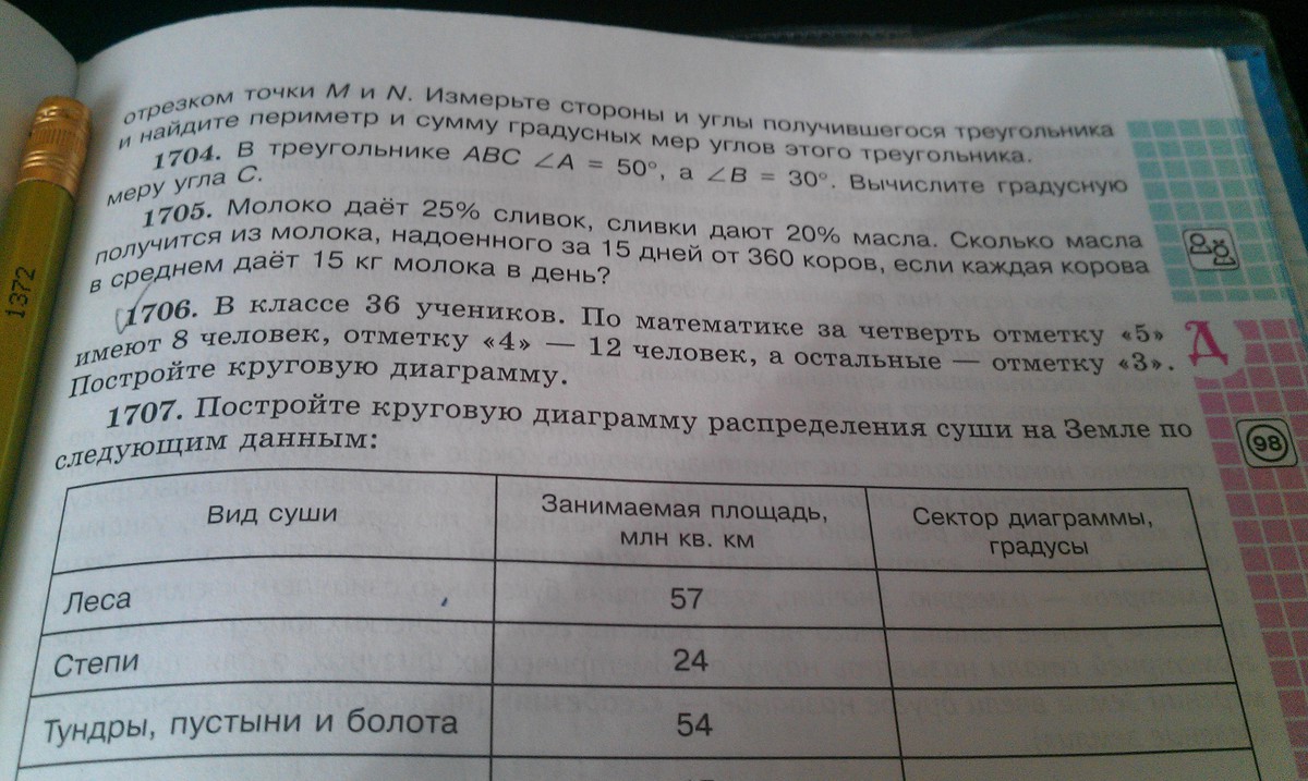 "5"составляют 8/36 ,"4"сост.12/36 ,3составляют 36-(8+12)=16 16/36 в круге 360градусов на одну часть приходится 360:36=10 градусов значит пятерки займут 80градусов "4"---120 а "3"160 вот и раздели круг с помощью транспортира
