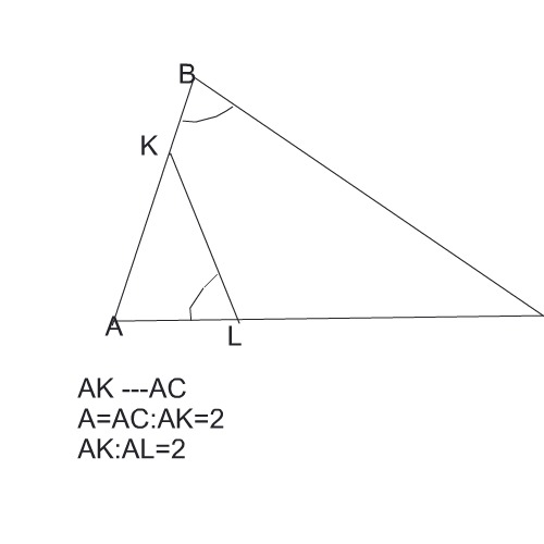 В треугольнике авс ас=18,ав=12 Точки L и K отмечены на сторонах ас и ав так, что AL=6 и AK=9. Докажите, что углы ABC и ALK равны