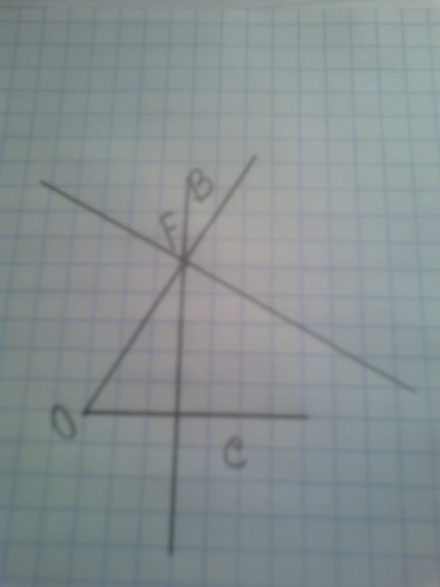 Постройте угол ВОС, равный 60о. Отметьте на стороне ОВ точку F и проведите через нее прямые, перпендикулярные сторонам угла ВОС.