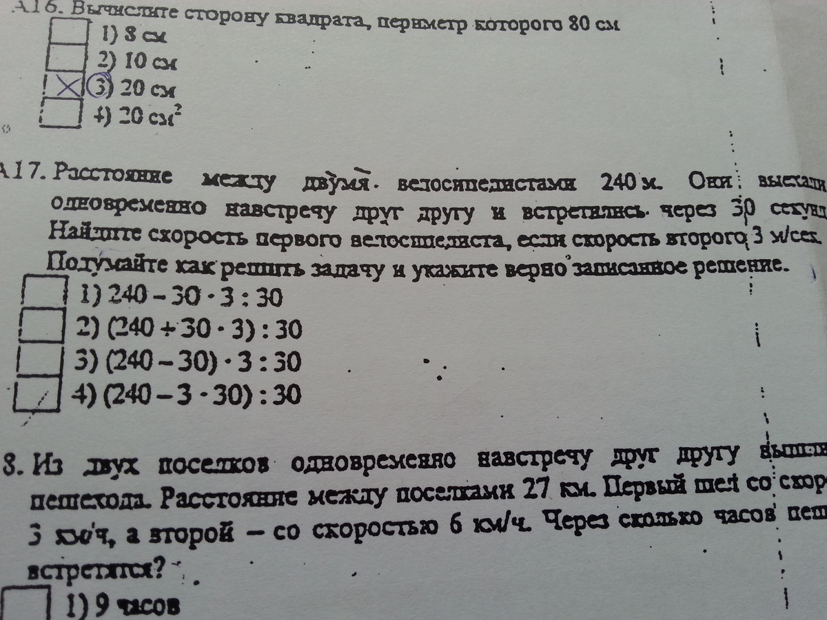 3) 150 : 30 = 5)м/с) - скорость 1-ого велосипедиста