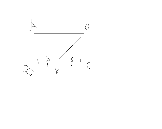 в прямоугольнике АВСД проведена биссектриса ВК. К- середина СД. Найдите площадь прямоугольника,если СК=3