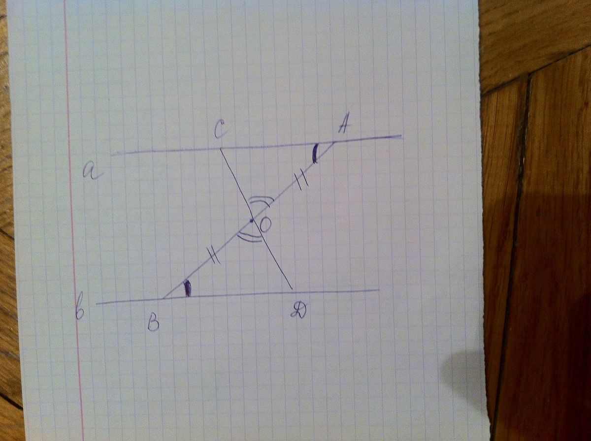 2) угол САО=углу ОВД как внутренние накрест лежащие при параллельных прямых а и в и секщей АВ