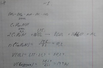 Какой обьём воздуха расходуется на сжигание 14,6г диэтиламина? Обьёмная доля кислорода в воздухе - 21%