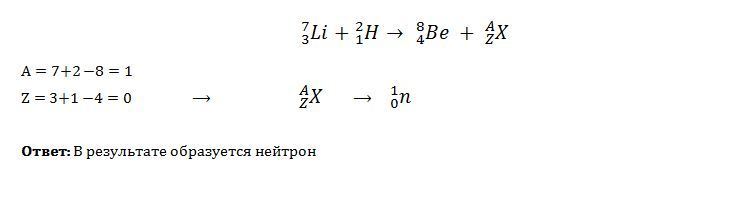 В результате бомбардировки изотопа лития 7 3Li ядрами дейтерия образуется изотоп бериллия 7 3Li+2 1H→8 4Be+...какая при этом испускается частица?