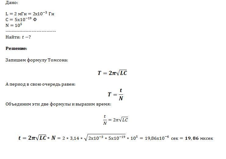 ёмкостью 5*10-9 Ф совершится 105 электромагнитных колебаний?