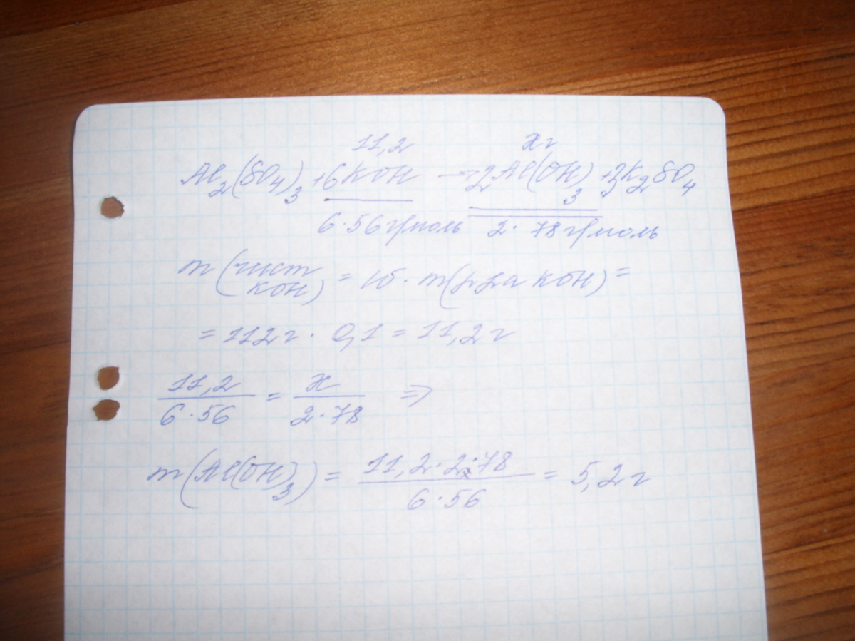 Сколько грамм Al(OH)3 образуется при взаимодействии Al2(so4) с 112 граммами 10%-го раствора KOH?