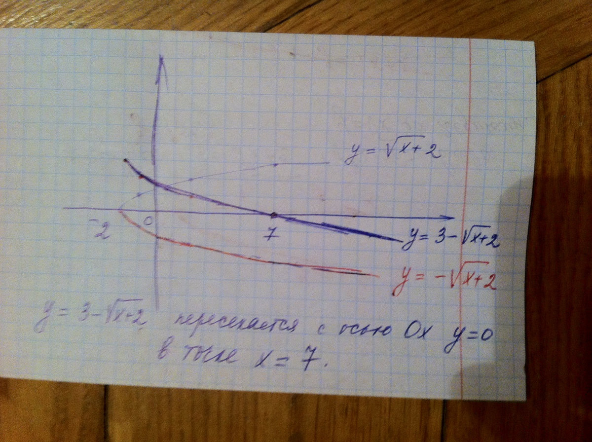 Для того, чтобы построить график, уравнение должно иметь вид у = 3 - корень из х - 2. Если же в уравнении одна переменная, то его графиком будет точка х = 7 на координатной прямой