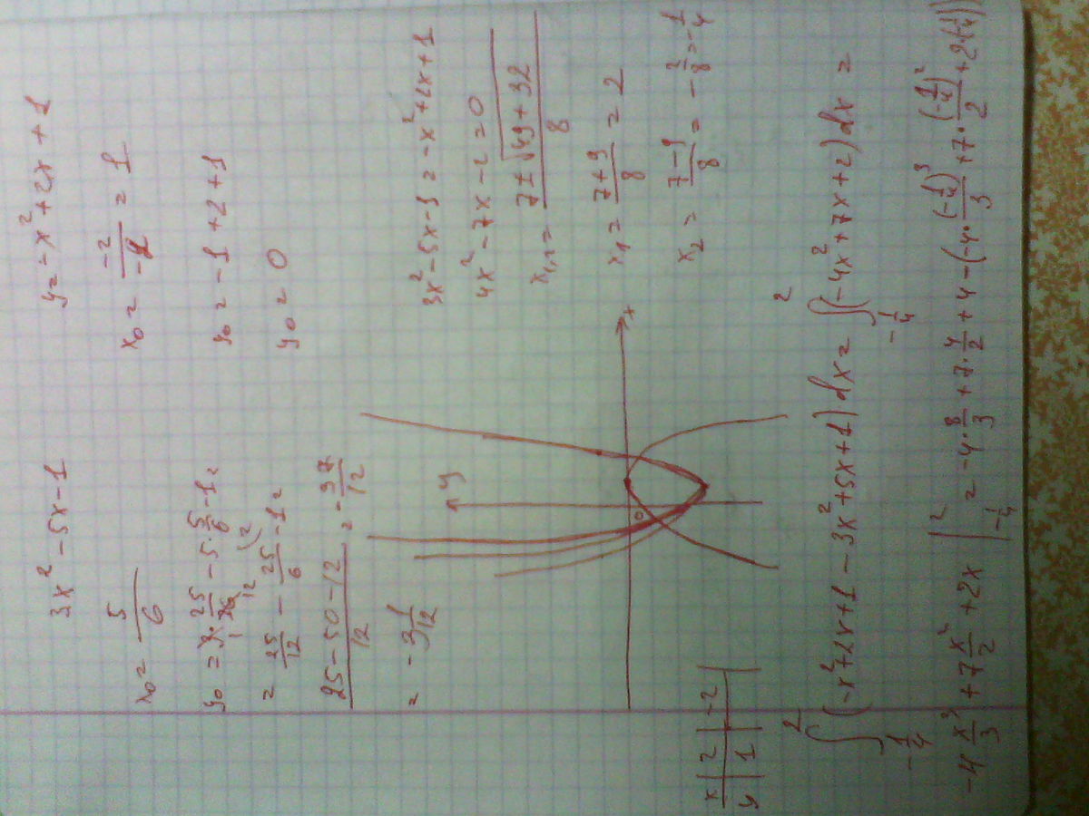Вычислить площадь фигуры, ограниченной параболами y=3x^2-5x-1 и y=-x^2+2x+1. Изобразите график.
