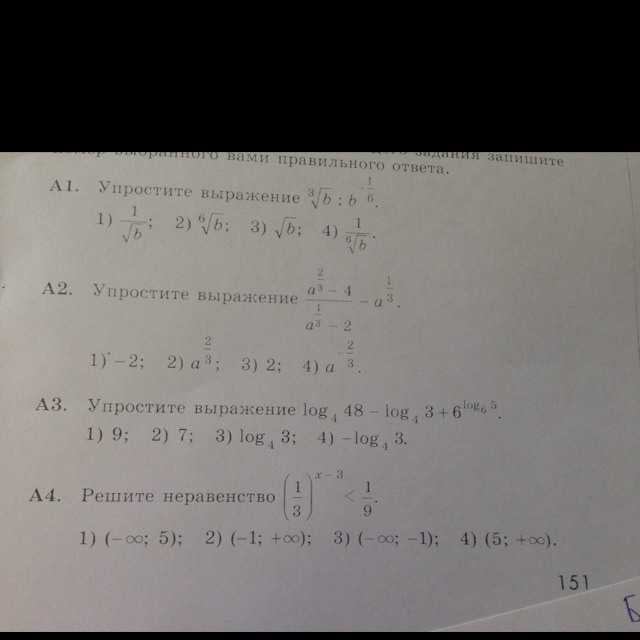 2/ (a^2/3-4)/(a^1/3-2)-a^1/3=(a^1/3-2)(a^1/3+2)/(a^1/3-2)-a^1/3=a^1/3+2-a^1/3=2 ответ 3