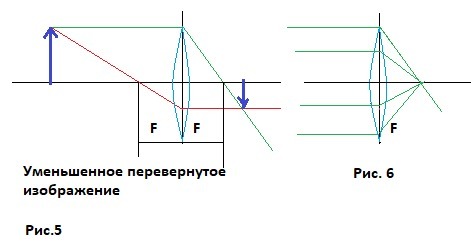 4. За двойным фокусным расстоянием получаем перевернутое и уменьшенное изображение.