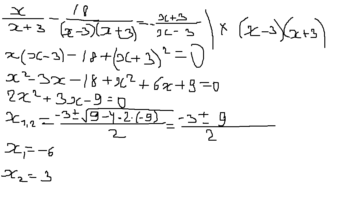 №1. x/x+3 - 18/x²-9 = x+3/3-x.