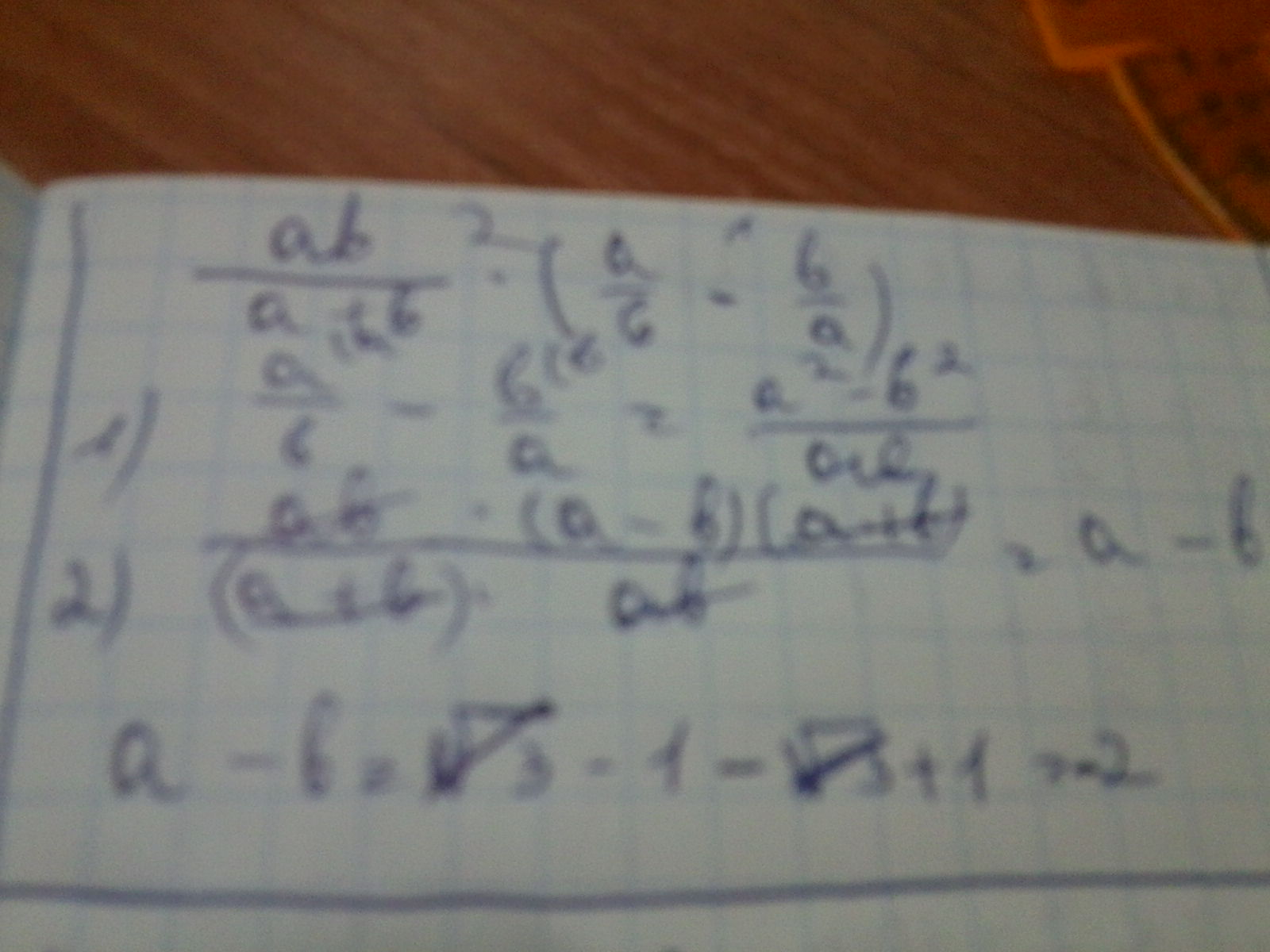 ab/a+b·(a/b-b/a)=ab/a+b·(a²-b²/ab)=ab/a+b·(a+b)(a-b)/ab=a-b=