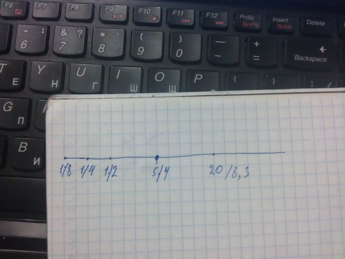 Отметь на числовом луче : 1/4,1/8,1/2,5/4,20/8,3 1/4