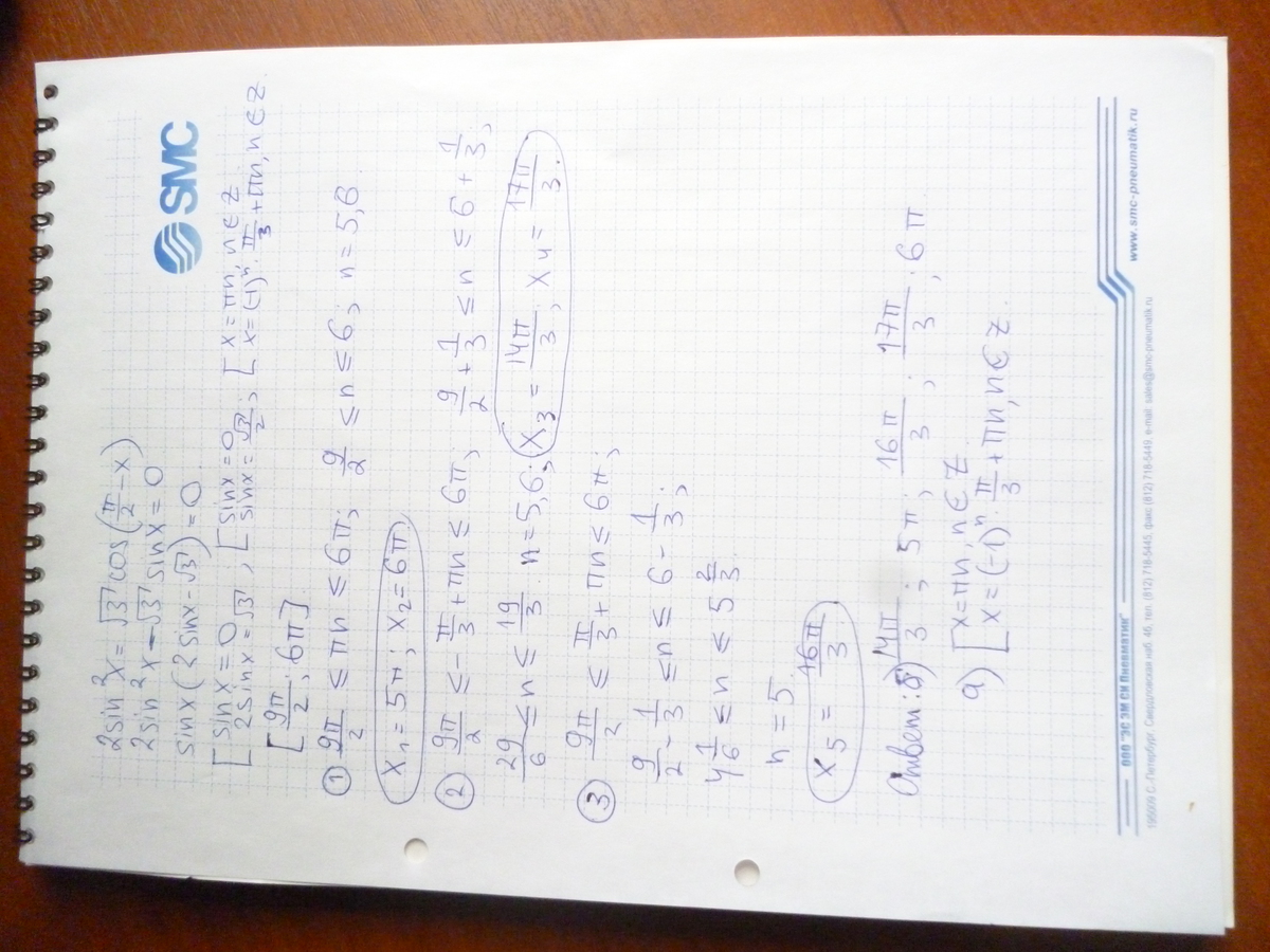 Б) найдите все корни этогот уравнения, принадлежащие промежутку [9п/2;6п]