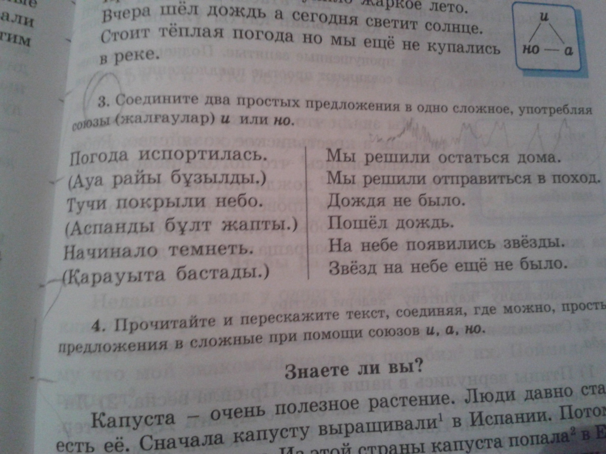 1)погода испортилось и мы остались дома. 2) тучи покрыли небо но дождя не было . 3)начинало темнеть и поЯвились звезды