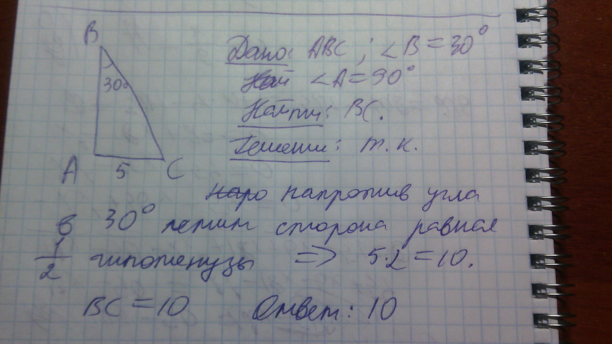 Помогите пожалуйста. Придумайте задачу на тему прямоугольные треугольники 7 класс, но что бы там были катеты и гипотенузы. Желательно с ДАНО и РЕШЕНИЕ. Cos,sin и корни не надо мы не прошли. Заранее спасибо за ответ и за помощь ♥♡★☆