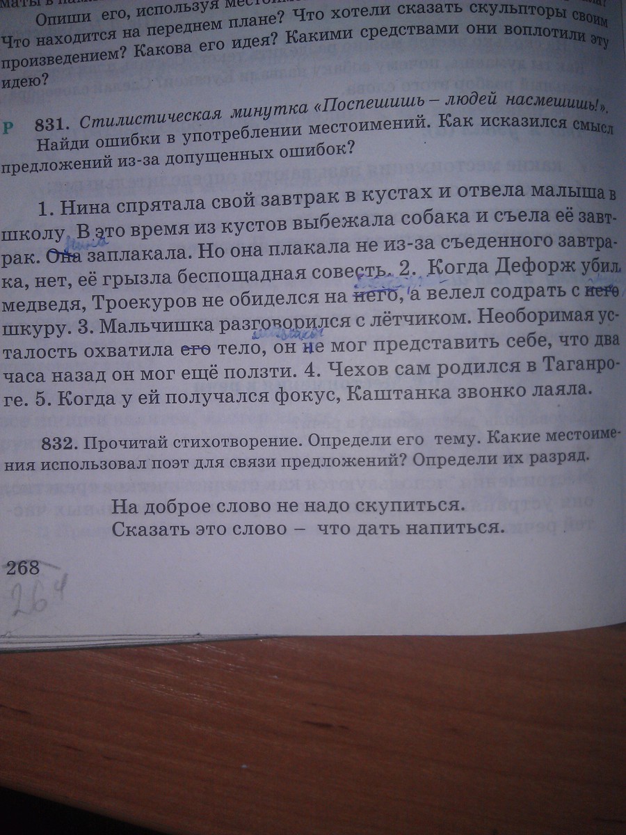 3) текст: найди ошибки в употреблении местоимений номер 831