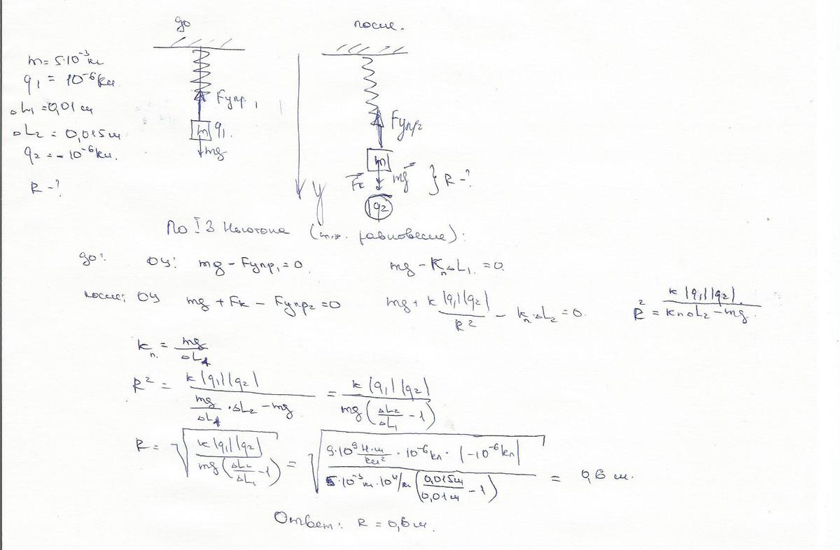 установившееся расстояние между шариками. Пружину считать непроводящей.