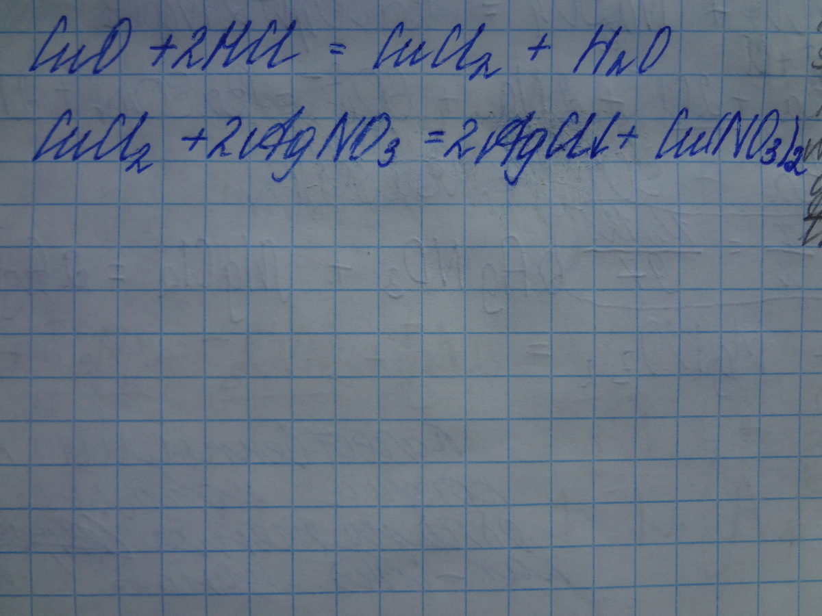 оксид меди (II) → хлорид меди (II) → хлорид серебра