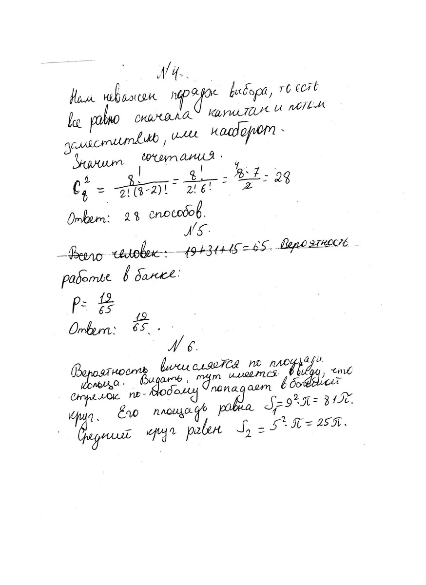 1. Сколькими способами можно разместить шесть различных книг на полке?2. Сколько трехзначных чисел с разными цифрами можно составить из цифр 0, 3, 4, 5, 8?3. Из восьми членов команды надо выбрать капитана и его заместителя. Сколькими способами это можно сделать?4. Вычислите 5. Выпускники экономического института работают в трех различных компаниях: 19 человек - в банке, 31 - в фирме и 15 - в налоговой инспекции. Найдите вероятность того, что случайно встреченный выпускник работает в банке.6. Мишень представляет собой три круга (один внутри другого), радиусы которых равны 4, 5 и 9 см. Стрелок выстрелил, не целясь, и попал в мишень. Найдите вероятность того, что он попал в средний круг, но не попал в маленький круг.