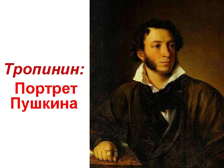 Пожалуй, самым известным портретом в творчестве В. А. Тропинина является портрет А. С. Пушкина, написанный в 1827 году. Портрет художнику заказал сам поэт, чтобы потом преподнести его, как сюрприз, своим друзьям.