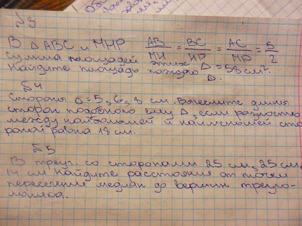 3) Треугольники подобны и коэффициент подобия =5/2. Площади подобных тр-ков относятся как квадрат коэффициента подобия, то есть 25/4. Значит (25+4)*Х=58, откуда Х=2см. Ответ: Sabc= 25*2=50cм², Smnp = 4*2=8см²
