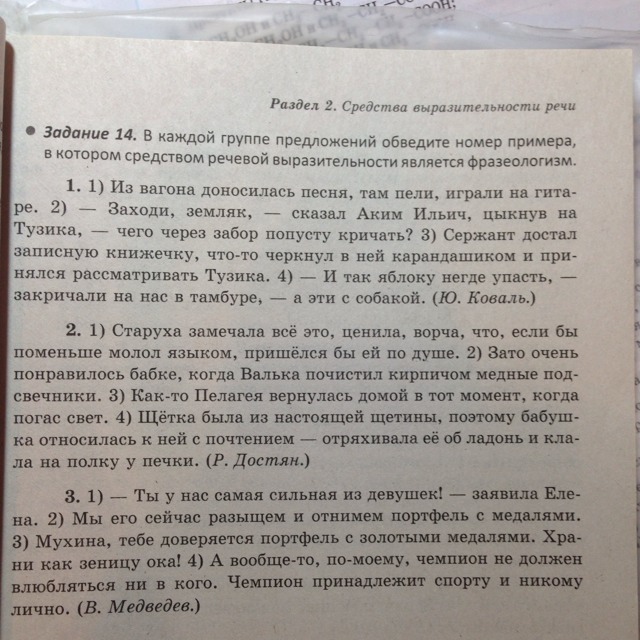 В каждой группе предложений назвать номер примера в котором средством речевой выразительности является фразеологизм