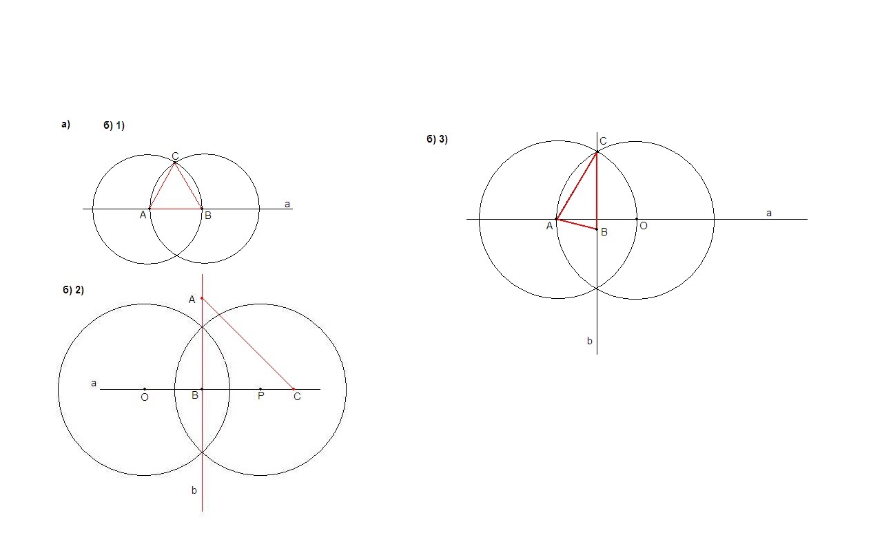 Проведем две окружности одинакового радиуса, равного АО, с центрами в точках А и О.