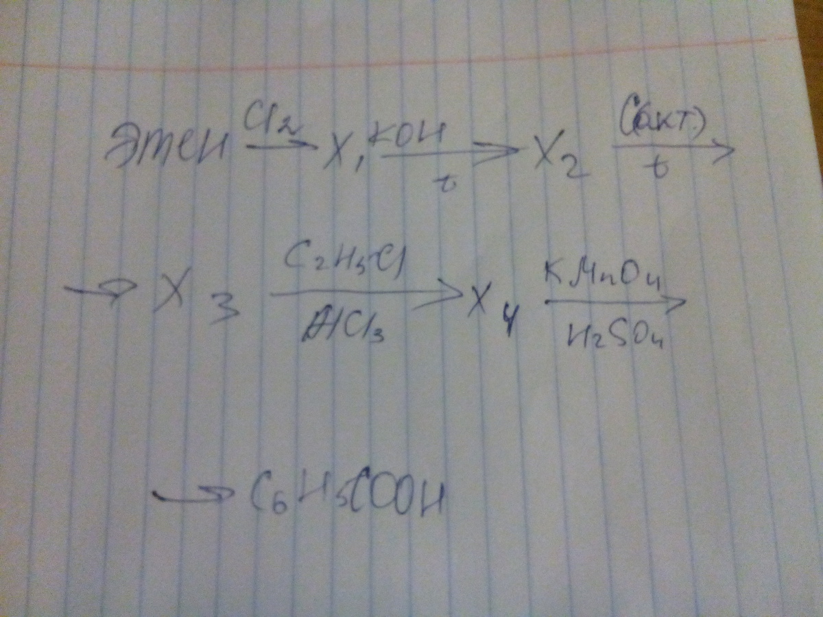 5)5 c6h6-c2h5+ 6 kmno4+ 9 h2so4-> 5c6h6-cooh+ 3k2so4+ 6mnso4+ 11 h2o