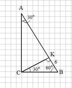 ΔАВС: ∠С = 90°; ∠В = 60°; СК ⊥АВ; ВК = 6 см