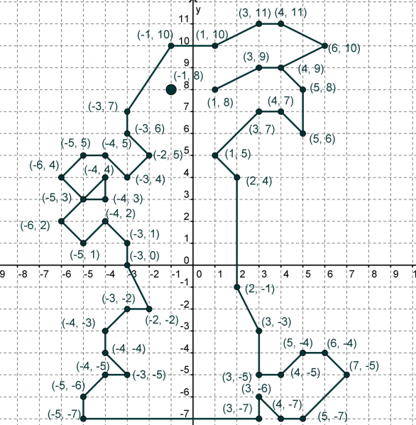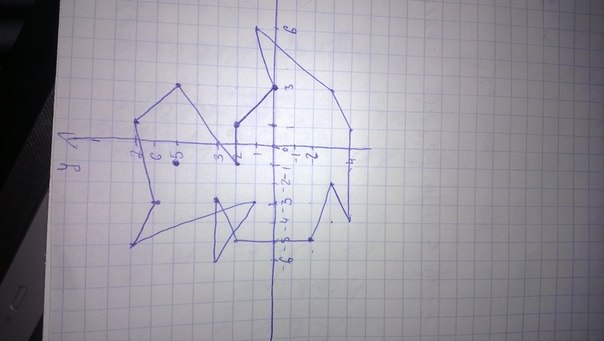 как соединить координаты (3;0);(1;2);(-1;2);(3;5);(1;7);(-3;6);(-5;7);(-3;1);(-6;3);(-3;3);(-5;2);(-5;-2);(-2-3);(-4;4);(1;-4);(3;-3);(6;1);(3;0); глаз(-1;5) должен получится кролик